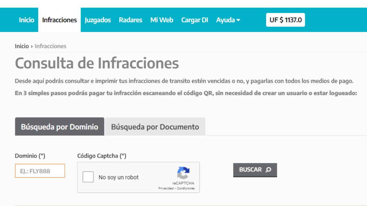 - Una vez en el sitio, se puede consultar con la patente del auto o el DNI. El resultado evidenciará si hay infracciones pendientes, con los detalles y el monto a pagar.