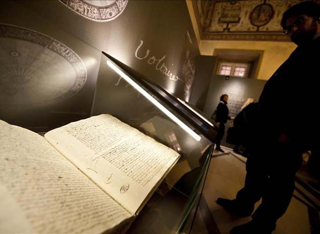 También se exponen las actas del proceso a Galileo Galilei (1616-1633) recogidas por la Congregación del Santo Oficio. En ellos, Galileo terminó por renegar del descubrimiento copernicano de que la tierra gira alrededor del sol.