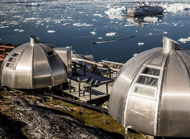 Este hotel, el cuatro estrellas más al norte del mundo, se encuentra en Ilulissat, el tercer asentamiento más grande de Groenlandia, con menos de cinco mil habitantes. Ideal para los que buscan paz absoluta u ocultarse de la sociedad. No por nada Superman tiene su "Fortaleza de la Soledad" en algún rincón similar a este. Un plan inevitable es el de sentarse en un banco y ver pasar los cruceros navegar ese campo minado de icebergs.