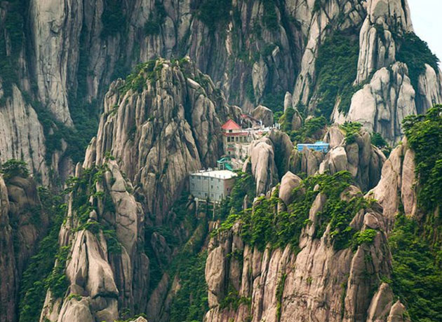 Solo 60 mil escalones separan al turista del complejo. Nada que no se pueda hacer con paciencia y una buena forma física, ya que está ubicado cerca de la cima de la montaña de Huangshan, China. Igual, para los que no están aptos para el esfuerzo pueden acceder por funicular.