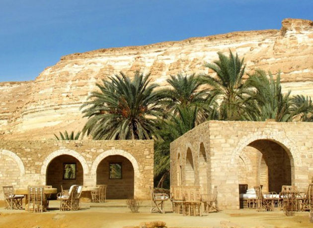 En el corazón del sofocante desierto egipcio, se encuentra el oasis de Siwa. Allí, camuflado entre el paisaje se encuentra este hotel, que pasa desapercibido debido a una arquitectura que respeta las tradiciones locales. Como no hay electricidad, por las noches todo se ilumina con cientos de velas, que compiten con las estrellas y generan un ambiente de inmensidad único.