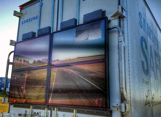 Para reducir estas cifras, Samsung, que difundió esas cifras, desarrolló desde hace un año un sistema de cámaras en la parte delantera de los camiones, y pantallas gigantes en la parte trasera de los remolques.
