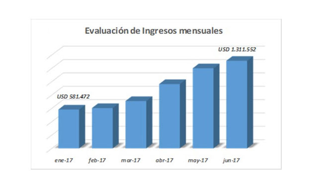 Hasta junio, la empresa había logrado recaudar 2,3 veces más lo hecho en enero pasado, al pasar de u$s581.000 a más de u$s1,3 millón en junio pasado, según lo informado por la misma empresa.