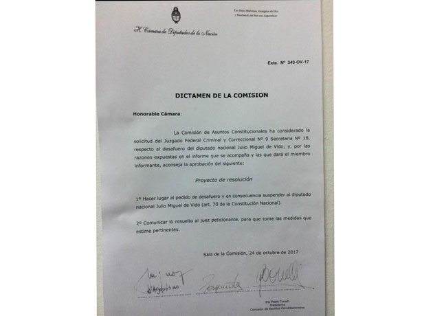 El presidente de la Comisión de Asuntos Constitucionales señaló que la justicia podrí­a "avanzar sin quitarles las inmunidades al legislador hasta su condena", pero en este caso los magistrados consideraron que "puede haber maniobras" para que se avance en estas causas.