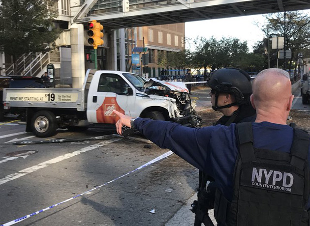 El atacante conducía una camioneta de alquiler blanca con un logo de la cadena de ferreterías Home Depot y se metió en el camino de bicicletas y de peatones, atropellando a varias personas antes de estrellarse contra un bus escolar e hiriendo a dos adultos y dos niños.
