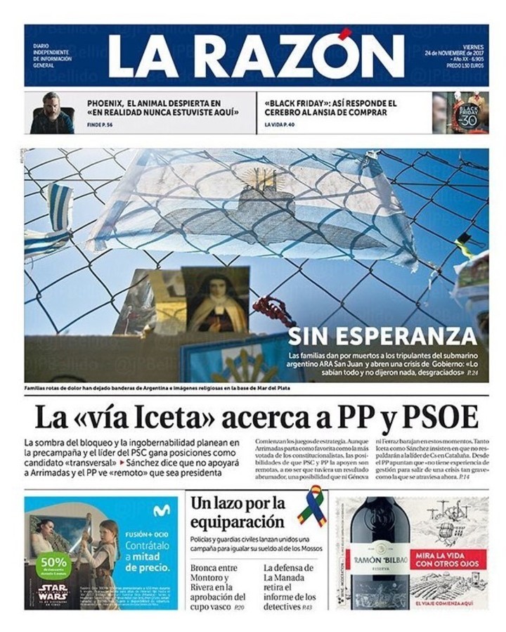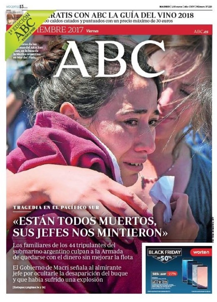 ARA San Juan: la noticia de la explosión fue a las tapas de los diarios de Europa