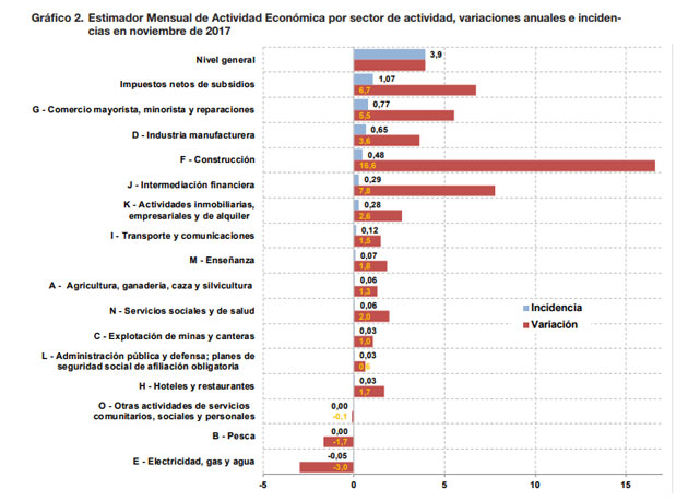 Sigue con impulso: la economí­a creció un 3,9% en noviembre, con la construcción como "locomotora"