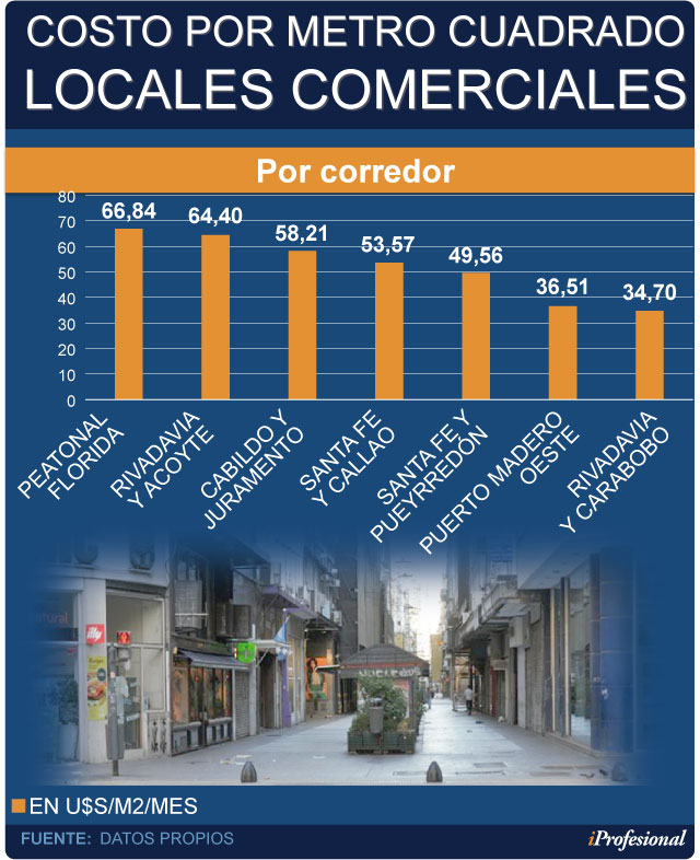 En algunas de las zonas con alta demanda -como la peatonal Florida, Santa Fe o Acoyte y Rivadavia-, esa referencia puede tocar el 8% anual. En el otro extremo, en lugares menos requeridos, cae al 5%.
