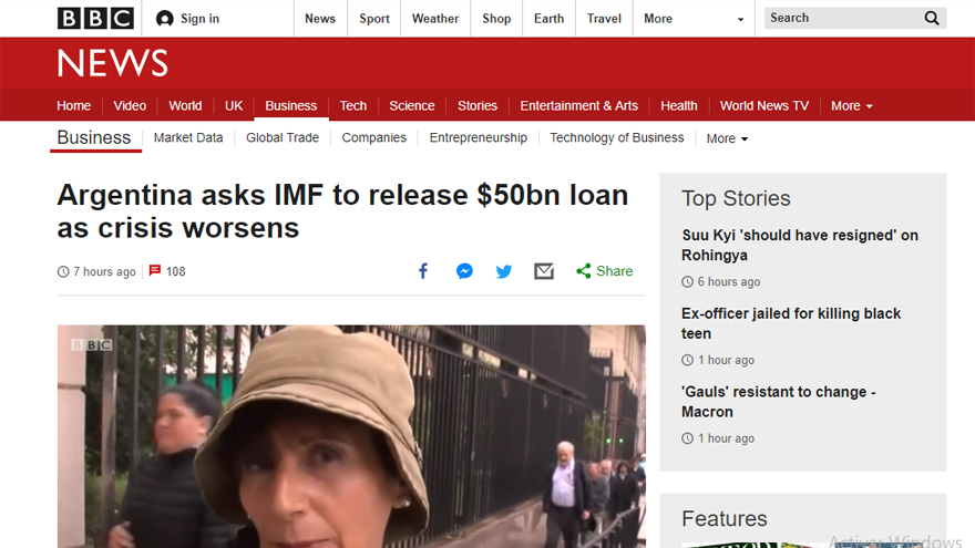 "Los inversionistas están preocupados de que Argentina no pueda pagar sus fuertes préstamos gubernamentales y pueda incumplir. Cuando los términos del préstamo se acordaron en mayo, el presidente Macri dijo que esperaba que la economía se recuperara y no planeaba usar el dinero. Las tasas de interés más altas del mundo y el respaldo del FMI no han tranquilizado a los inversores”, sentencia la BBC.