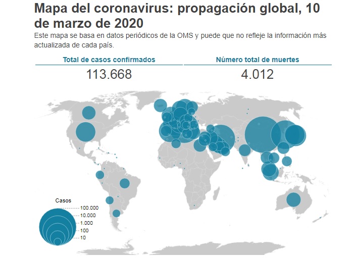 Eso equivale a menos del 0,1% de los casi 110.000 casos contabilizados por la Organización Mundial de la Salud (OMS) a las 09:00 GMT del lunes 9 de marzo.