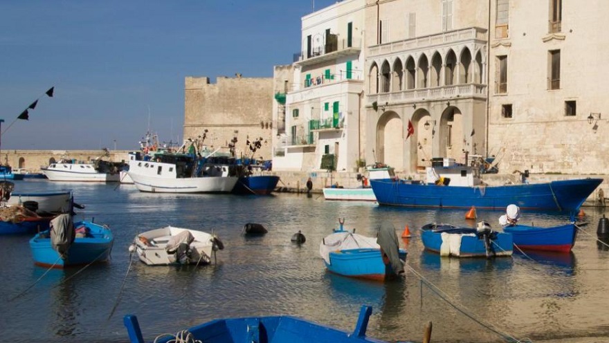 La ciudad portuaria de Apulia, tan histórica como económicamente funcional, causa sensación con sus iglesias medievales y castillos que sobresalen en el horizonte del mar Adriático. También es el sueño de un pintor, con barcos de pesca de color azul brillante que añaden un toque de color a las paredes encaladas del puerto.