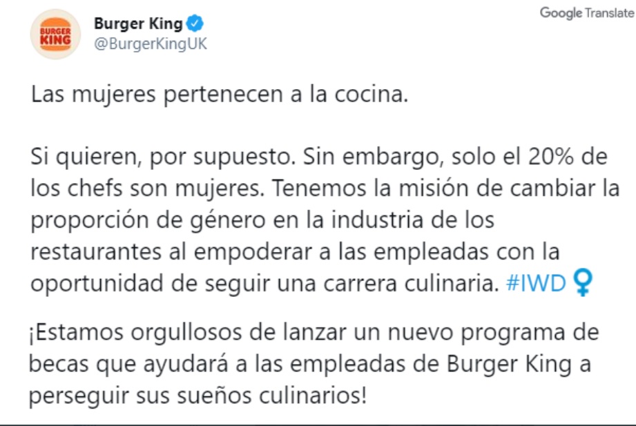 Escandaloso mensaje de Burger King: "Las mujeres pertenecen a la cocina", ¿qué pasó?