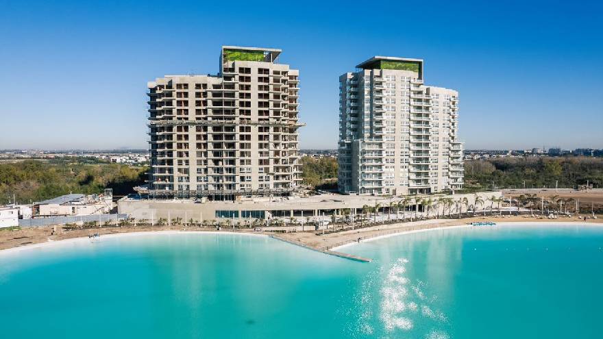 Otro que tiene como principal atractivo una laguna de aguas cristalinas de 5,5 hectáreas con la tecnología Crystal Lagoons es Terralagos, en la localidad de Canning. Con expensas que varían según los ambientes de la unidad entre $72.000 y $102.000, posibilita disfrutar de 3 playas con arena y palmeras sobre la laguna para prácticas y deportes acuáticos, vestuarios, un bar con vista panorámica y un parque acuático con juegos.