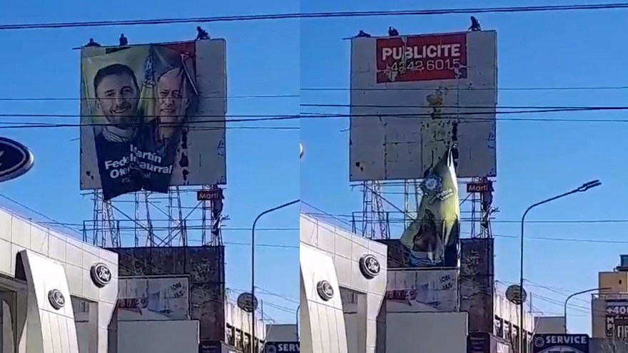 Se trataba de una gigantografía de campaña que promocionaba la fórmula local Otermín-Insaurralde, la cual estaba ubicada en la avenida Hipólito Yrigoyen, a metros de la calle Portela.