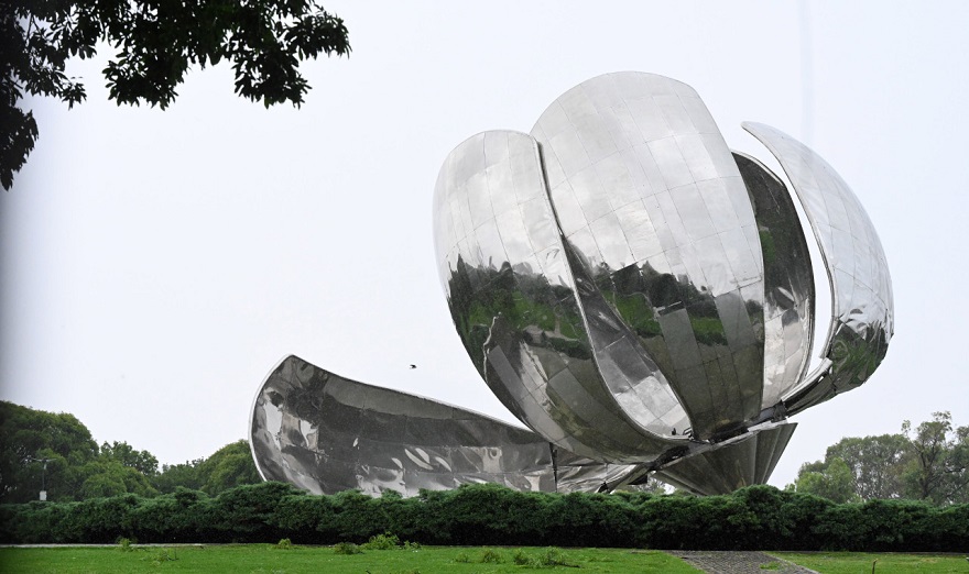 La obra de 18 toneladas ubicada en Avenida Figueroa Alcorta al 2300, sufrió una destrucción parcial que afectó a uno de sus seis pétalos recubiertos de acero inoxidable, que tuvo abolladuras y se precipitó al suelo con parte de su recubrimiento metálico desprendido.