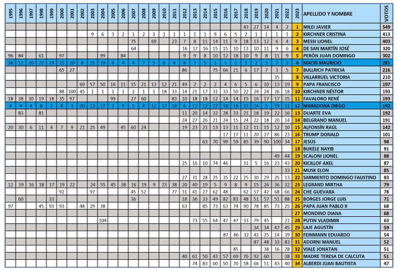 En el año eleccionario 2021 llegó al 4°, subiendo luego al 2° en el 2022, y ahora, tras su triunfo, se posicionó al tope (1°).