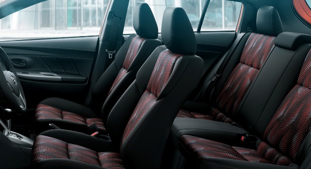 Los asientos están tapizados en tela con doble costura de hilo rojo, mientras que el asiento del conductor tiene ajuste en altura para mayor confort.