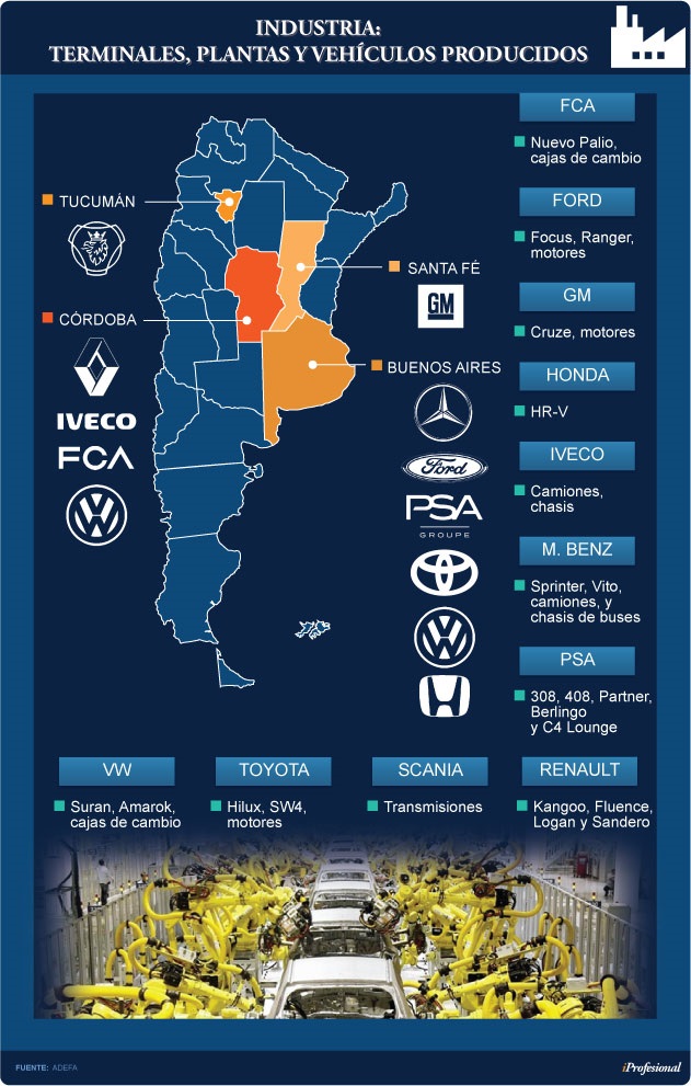 Las terminales argentinas que tienen presencia en el país actualmente son once. En total, fabrican 20 modelos de vehículos de pasajeros y utilitarios, además de los camiones.