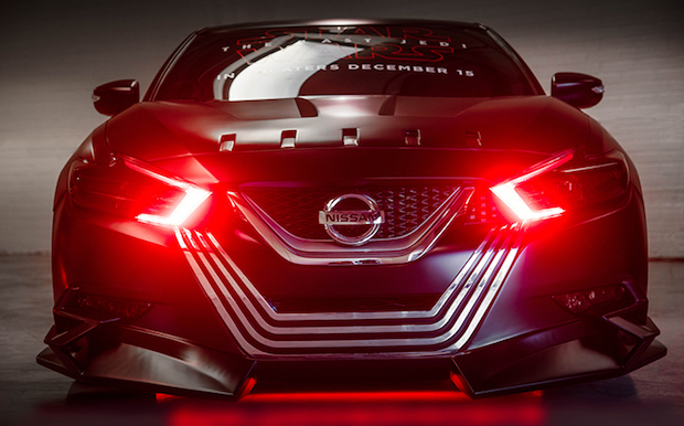 Los diseñadores fusionaron la inconfundible máscara negra y plateada de Kylo Ren con el lenguaje de diseño de V-motion de Nissan Maxima utilizando un solo bloque de aluminio para la parte delantera del vehí­culo deportivo de cuatro puertas. Un alerón inferior frontal, una campana y cuerpo impactantes están recubiertos con colores caracterí­sticos. El proyecto se completa con un conjunto de faros de color rojo y luces debajo de la carrocerí­a que pulsan al azar, similar al sable de luz de batalla de Kylo Ren.