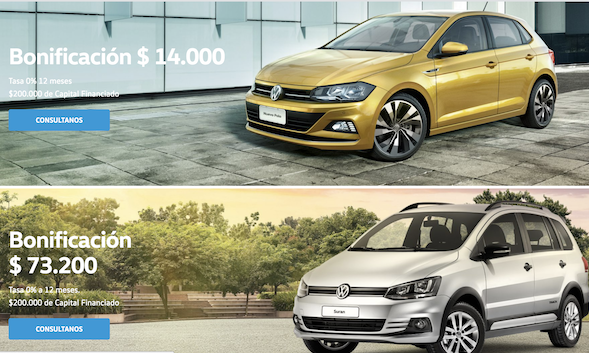 En el caso de Volkswagen, tiene en marzo el descuento más grande: rebaja $73.200 el Suran, seguido por una rebaja de $40.000 para el Gol y $14.000 para el nuevo Polo, lanzado este verano.