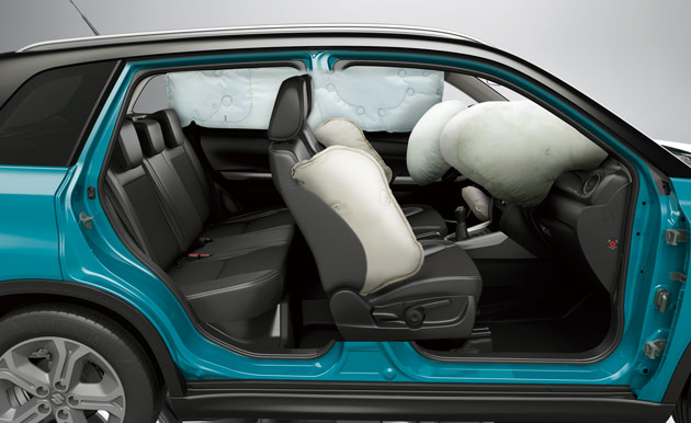 Otro de los puntos fuertes de la nueva Vitara es su equipamiento en materia de seguridad: todas las versiones cuentan con airbags frontales, laterales y de cortina, sistema de frenos ABS con EBD, asistencia electrónica de frenado (BA), sistema de frenos a discos en sus cuatro ruedas, control de estabilidad (ESP), freno de arranque en pendiente (versiones AT), faros antiniebla traseros, luces diurnas DRL y anclajes ISOFIX, entre otros.