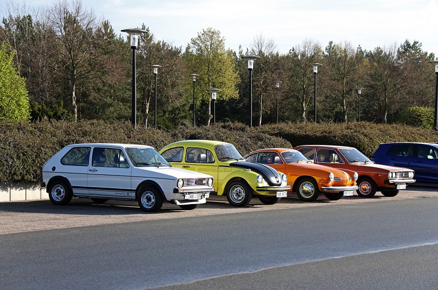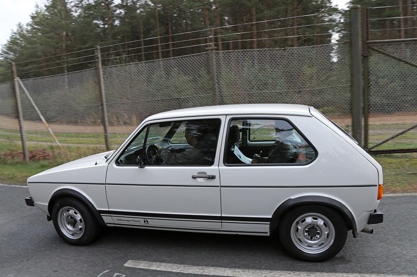Golf más antiguos que aún permanecen intactos en un circuito de pruebas de la marca en Alemania. Allí, periodistas de diferentes países hacían fila para conducir este auto que