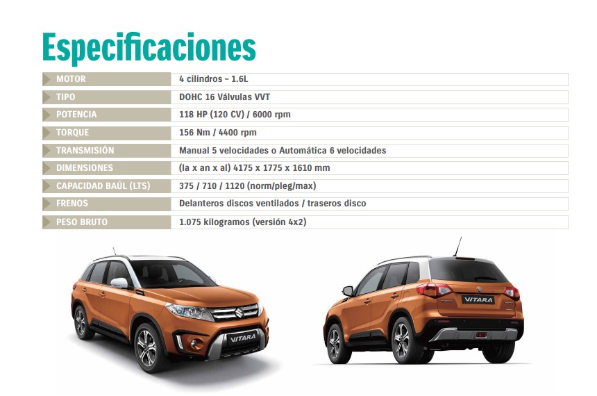La New Vitara es importada desde Hungría. Fue desarrollada a partir de una nueva plataforma global en la cual los ingenieros han trabajado especialmente sobre su optimización estructural, combinando su diseño de forma tal de obtener un peso neto final de solo 1.075 kilogramos (versión 4x2 MT), entre 200 y 350 kilos menos que sus competidores directos.