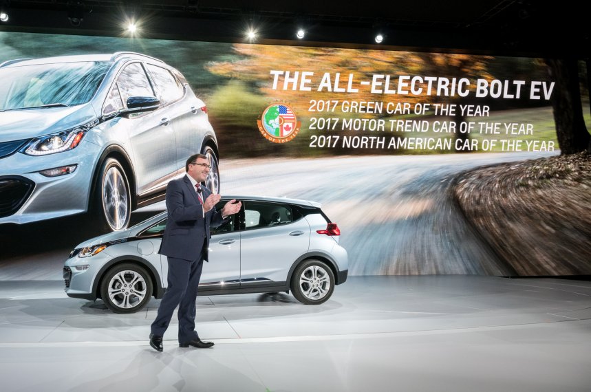 [caption id="attachment_4331" align="alignnone" width="860"] 2017 Chevrolet Bolt EV[/caption]Durante el Salón Internacional del Automóvil de Norteamérica (NAIAS), se reveló cuál fue el Auto del año" 2017, quedando en manos de un modelo que se destaca por su tecnología y accesibilidad, como el Chevrolet Bolt EV.Se trata de un nuevo reconocimiento para la marca que cumple con la promesa de ofrecer un auto eléctrico pero que sea accesible para el consumidor en general.El Bolt EV es un auto de pequeñas dimensiones, cómodo y práctico para andar en la ciudad, con una autonomía para recorrer 320 kilómetros con una carga completa.En cuanto al equipamiento, incluye Electronic Precision Shift, paleta al volante Regen on Demand™ y pantalla táctil color de 10,2”. La versión Premier suma asientos delanteros y traseros calefaccionados, cámara de visión 360º y cámara en espejo retrovisor.Su estética se asemeja a la de un pequeño crossover. Está fabricado con materiales ligeros, incluyendo aluminio, magnesio, fibra de carbono y malla tejida complementan el diseño, al tiempo que reducen el peso del vehículo para ayudar a maximizar los rangos de desempeño. Características aerodinámicas tales como guardabarros traseros ventilados también contribuyen a esta tarea.El precio, en Estados Unidos, es de 30.000 dólares. “Chevrolet Bolt EV es un auto eléctrico diseñado para ser accesible y no exclusivo”, comentó Mary Barra, CEO de General Motors, durante su presentación en 2015.“Para Chevrolet, la electrificación de los vehículos es un pilar del futuro del transporte y necesita estar al alcance de un segmento de consumidores más amplio”.