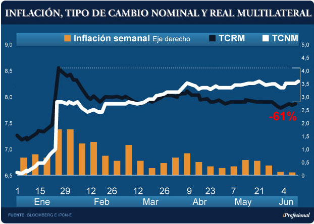 En diálogo con iProfesional, Luciano Cohan, economista jefe de Elypsis, sostuvo que "hasta marzo hubo una inflación muy fuerte, ahí se resignó la mayor parte de ese colchón. Luego, si bien el tipo de cambio nominal quedó relativamente quieto, la inflación se desaceleró y las monedas de nuestros socios se apreciaron, con lo cual la pérdida de competitividad no fue tan dramática, pero sí preocupante".