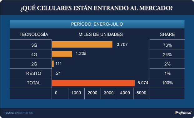 Un aspecto que preocupa a empresarios y expertos del sector informático es que el bajón en el ingreso de nuevos celulares está retrasando la incorporación de equipos que cumplan con los requerimientos de la tecnología 4G.