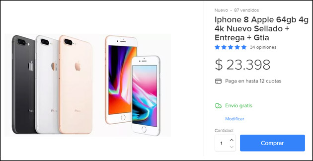 ¿Cuánto cuesta? Quien opte por adquirir el iPhone 8 deberá desembolsar unos $23.400 por la versión de 64 GB. Este valor, al tipo de cambio oficial, equivale a unos u$s1.322.