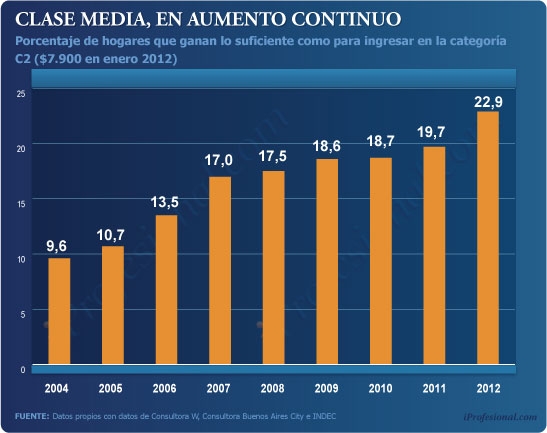 Y si bien la polémica sobre qué aspectos deben ser tenidos en cuenta para saber si alguien pertenece a esta categoría social puede insumir horas de debate, lo cierto es que los indicadores ligados al consumo, empleo y pobreza tienen la contundencia suficiente como para afirmar que el total de integrantes de este segmento -al menos hasta ahora- ha ido in crescendo.