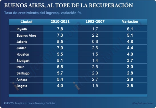 La conclusión es que Buenos Aires es la ciudad de Sud América que ha recuperado su nivel de ingreso con más fuerza, superando incluso a San Pablo.