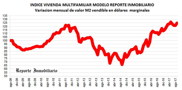 Los costos se mantuvieron en dólares el último mes, asimilándose el valor al que se habí­a llegado en abril del presente año, luego de variaciones en la cotización cambiaria. Actualmente el valor del m2 vendible es de u$s1.190,53 (o $21.072).