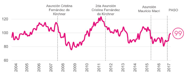De esta manera, alcanza el mejor puntaje en lo que va del mandato de Cambiemos; eso sí, todavía no alcanza el nivel de expectativas que existía en 2015, sobre el final del mandato de Cristina Kirchner.