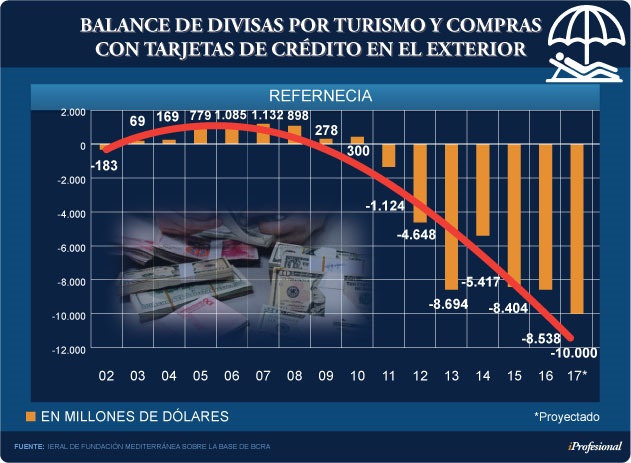 "En un contexto de ingreso de divisas y de elevado déficit, el tipo de cambio es la variable de ajuste. Como los ingresos corrieron por encima de la inflación, es de esperar que el turismo emisivo crezca, con el consiguiente aumento del déficit sectorial", apunta Gabriel Caamaño Gómez, economista del Estudio Ledesma.