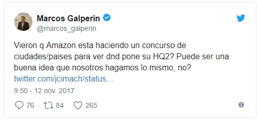 En un tuit desafiante, el ejecutivo reveló que analizaba trasladar los headquarters a otro país. Mercado Libre salió a aclarar además que está inscripta desde 2007 en el régimen de promoción de la actividad del software impulsado por el Gobierno previo, al que calificó por ser una empresa de desarrollo de software y de valor agregado aplicado al e-commerce.