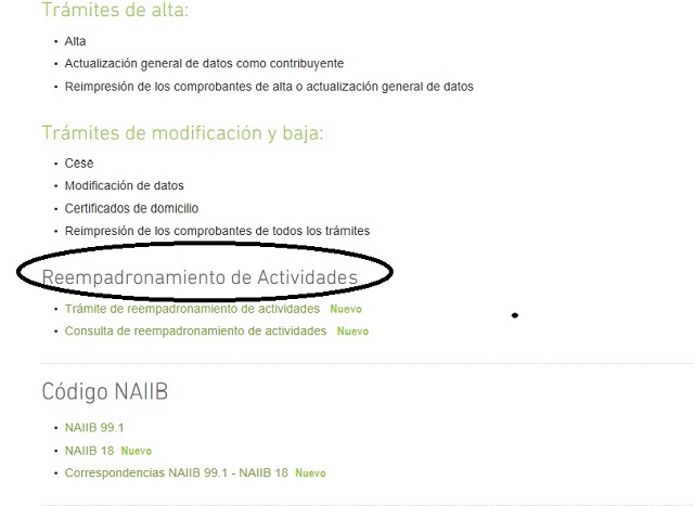 Asimismo, cuando por algún motivo no se haya realizado la conversión automática del código de actividad, los contribuyentes obligados deberán realizar el reempadronamiento hasta la referida fecha a través del sitio web de la citada Agencia, desde donde deberán seleccionar la opción que indique "Reempadronamiento de actividades" y luego "Trámite de reempadronamiento de actividades".
