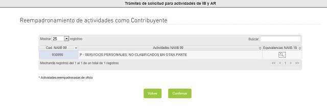 - El trámite de reempadronamiento de actividades no se puede rectificar. No obstante ello, una vez efectuado el mismo, el contribuyente podrá modificar las actividades a través del trámite de modificación de códigos de actividad previsto en el sistema "Trámites Web".
