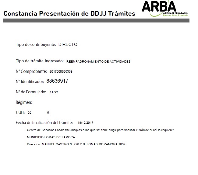 Para consultar el estado de la nueva actividad se debe acceder a la web de la ARBA con Clave de Identificación Tributaria (CIT) a la sección: "Consulta Reempadronamiento".