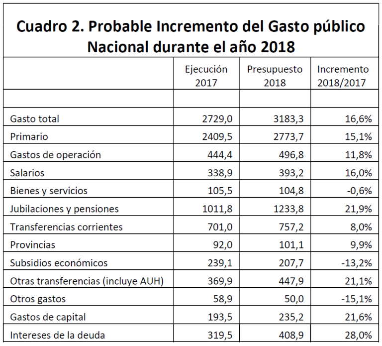 Para 2018 el presupuesto aprobado por el Congreso Nacional plantea un incremento del gasto público total del 16,6% y un incremento del gasto primario del 15,1%. Si el gobierno logra mantener el gasto dentro de estos límites, es perfectamente posible que la tasa de inflación se ubique en torno al 15%, tal como se ha fijado como meta para la política monetaria.