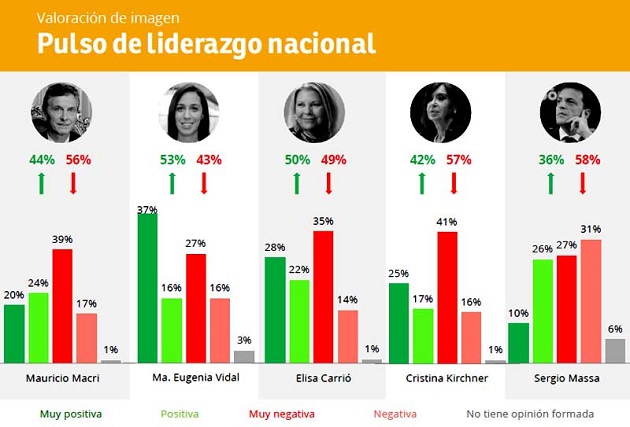 En tanto, en imagen, Marí­a Eugenia Vidal y Elisa Carrió sigue por arriba de Mauricio Macri y, hacia adelante, tienen menores riesgos de deterioro.