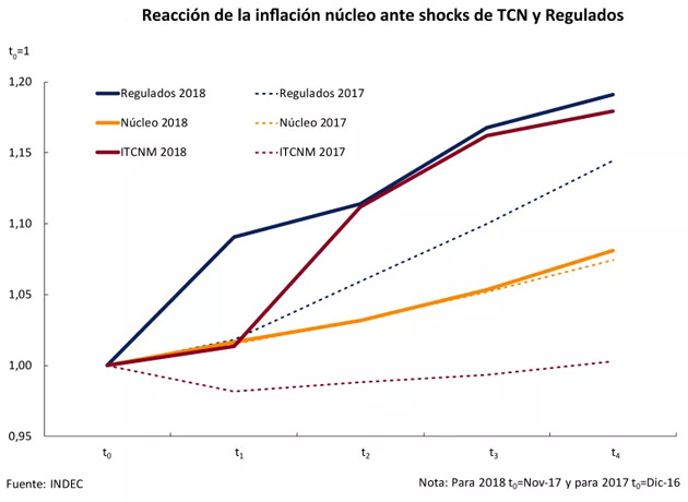 En una publicación realizada en su blog, la institución liderada por Federico Sturzenegger reconoció que entre diciembre de 2017 y marzo de este año se dio un "shock" de precios regulados y tipo de cambio que impulsó el alza inflacionaria. Sin embargo, destacó que "la inflación núcleo respondió menos que en episodios anteriores".