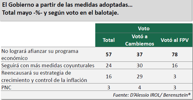 Al contrario, la gran mayoría de los encuestados opina que se trata de una medida inadecuada y más del 50% cree que Cambiemos no logrará afianzar su programa económico.