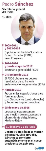 A sus 46 años, Sánchez se enfrenta a una situación sin precedentes en España, con solo 84 diputados socialistas de los 350 que tiene el Congreso y varios frentes abiertos en el país, como la crisis abierta en Cataluña por el proceso separatista.