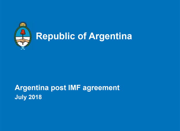 Precisamente, el brochure que prepararon los colaboradores de Dujovne se titula "Argentina post acuerdo con el FMI" (Argentina post IMF agreement).
