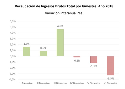 El año 2018 terminó con un aumento real de la recaudación de Ingresos Brutos del 0,4% interanual, según un reciente informe del Instituto Argentino de Análisis Fiscal.