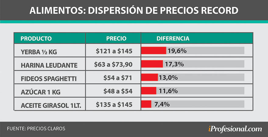 Los datos surgen del propio relevamiento oficial, expuesta en la página www.preciosclaros.gob.ar y da cuenta de las dificultades y la falta de referencia en los precios en una economía con alta inflación.