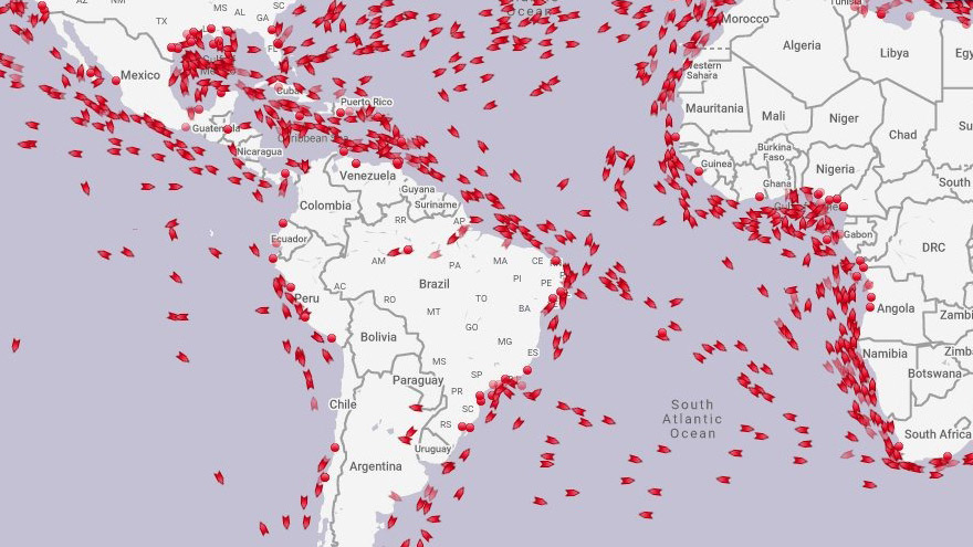 Al respecto, resulta elocuente el mapa de los barcos -representados por los puntos rojos- que se desplazan por todo el planeta para brindar este servicio.