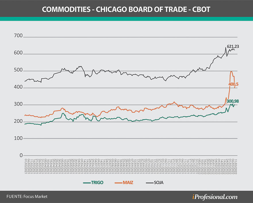 Los principales commodities se encuentran tocando nuevos valores records como la soja superando los u$s620 por tonelada (el máximo en casi una década), el trigo con u$s400 (toco un máximo de u$s500) y el maíz estable en 300 dólares.